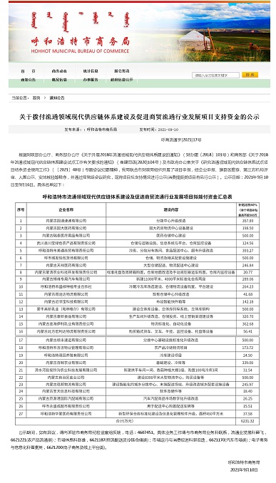 國家財政部與商務(wù)部聯(lián)合發(fā)布《關(guān)于開展2018年流通領(lǐng)域現(xiàn)代供應(yīng)鏈體系建設(shè)的通知》(財辦建〔2018〕101號),商務(wù)部發(fā)布《關(guān)于2018年流通領(lǐng)域現(xiàn)代供應(yīng)鏈體系建設(shè)試點工作有關(guān)要求的通知》(商建司函[2020]104號),經(jīng)過評審,呼和浩特市成為試點城市,納入財政資金支持范圍。呼市商務(wù)局聯(lián)合市財政局組織開展了"呼和浩特市流通領(lǐng)域現(xiàn)代供應(yīng)鏈體系建設(shè)及促進商貿(mào)流通行業(yè)發(fā)展項目"申報工作,開始全面推進流通領(lǐng)域現(xiàn)代供應(yīng)鏈體系建設(shè)試點示范工作。