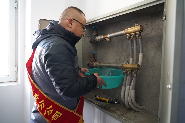 正說著,一位大娘來到我們宣傳現(xiàn)場(chǎng),向客服人員反映家中暖氣不熱,客服人員詳細(xì)登記了老人樓棟門牌號(hào)后,隨機(jī)安排工作人員前往老人家中查看情況??头藛T先是入戶為老人進(jìn)行了測(cè)溫,在老人反映最冷的陰面房間,客服人員利用專業(yè)的測(cè)溫儀,測(cè)得當(dāng)時(shí)室溫23.6℃。由于當(dāng)時(shí)是陽光充足的晌午,考慮到目前室溫受光照的影響,工作人員又仔細(xì)認(rèn)真地查看了大娘家的地暖分集水器。通過對(duì)分集水器的檢查,工作人員發(fā)現(xiàn)大娘家地暖盤管有明顯的堵塞情況,需要進(jìn)行沖洗。工作人員將這一情況詳細(xì)向大娘進(jìn)行解釋,并為其沖洗了濾網(wǎng)。對(duì)于工作人員熱情、認(rèn)真的服務(wù),大娘一個(gè)勁地說好。