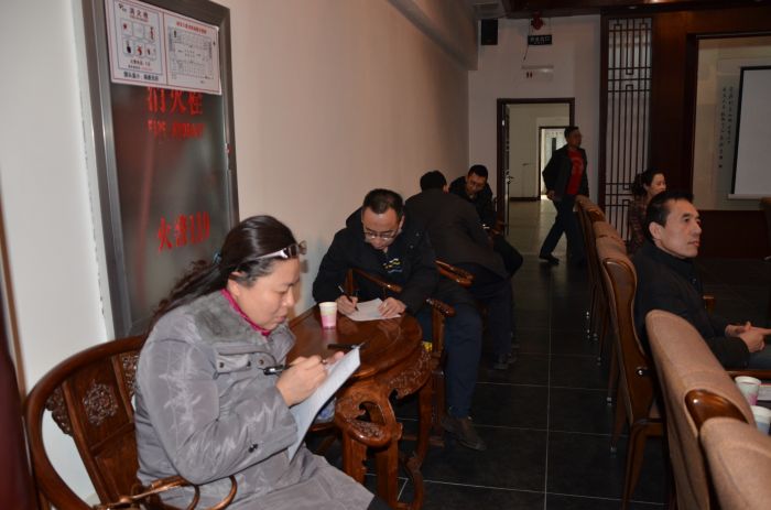 在管網(wǎng)公司會(huì)議室聽述職報(bào)告。