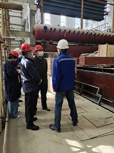 在三合村分公司200T燃煤熱水鍋爐等量替換工程現(xiàn)場(chǎng),楊杰詳細(xì)聽取了工程的進(jìn)展及復(fù)工復(fù)產(chǎn)工作準(zhǔn)備情況,并針對(duì)目前存在的困難和問題,現(xiàn)場(chǎng)辦公研究解決方案。