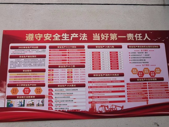 隨著全國第21個"安全生產(chǎn)月"的到來,管網(wǎng)公司按照集團公司"安全生產(chǎn)月"活動方案的工作部署,以"遵守安全生產(chǎn)法 當好第一責任人"為主題制訂了管網(wǎng)公司2022年度"安全生產(chǎn)月"活動實施方案;明確了"安全生產(chǎn)月"期間各項工作的開展時間、活動形式、活動內(nèi)容及工作要求,并于6月2日上午召開了啟動動員大會,制作了宣傳條幅、宣傳展板懸掛于公司辦公區(qū)域內(nèi)。