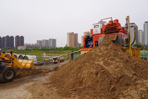 工程施工負(fù)責(zé)人王維說(shuō),“此次供熱管網(wǎng)施工是采用頂管方式進(jìn)行,河床下方的泥土不是人工挖采,而是采用泥水盾構(gòu)的方式,用水循環(huán)系統(tǒng)將泥土外排,再通過(guò)地面的泥沙分離設(shè)備,將泥沙分離,再將沙土外運(yùn)。”