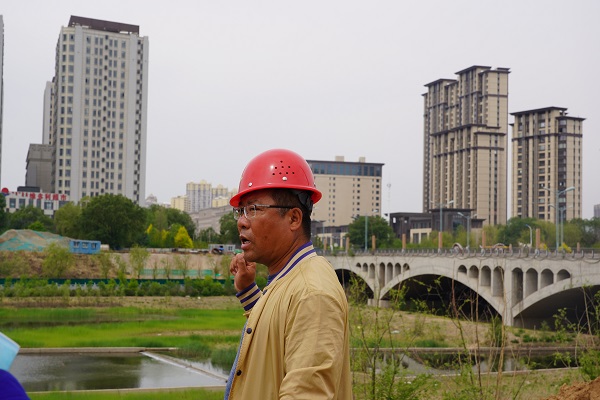 筆者來(lái)到成吉思汗大街與哈拉沁路交匯處的路口,遠(yuǎn)遠(yuǎn)就看見(jiàn)一臺(tái)重型吊車(chē)矗立在工地圍擋中,圍擋內(nèi)就是跨越東河頂管工程的施工現(xiàn)場(chǎng)。