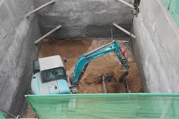 9月24日上午,筆者遠(yuǎn)遠(yuǎn)看到一吊車(chē)正將坑內(nèi)挖掘的土方吊起,走近作業(yè)坑,看到坑內(nèi)小型挖掘機(jī)正在開(kāi)挖土方,還有2名施工人員正在進(jìn)行鋼筋網(wǎng)片的焊接。